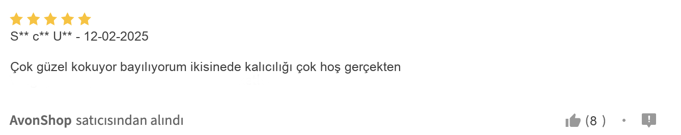 Kullanıcı yorumlarındaki olumlu geri dönüşler, kaliteli parfüm seti arayanların ne denli memnun kaldığını açıkça gösteriyor. Hafif ama kalıcı yapısıyla gün boyunca tazelik ve özgüven veren bu ürün, özel günlerde ve günlük yaşamda kendinizi şımartmanın en zarif yolu.