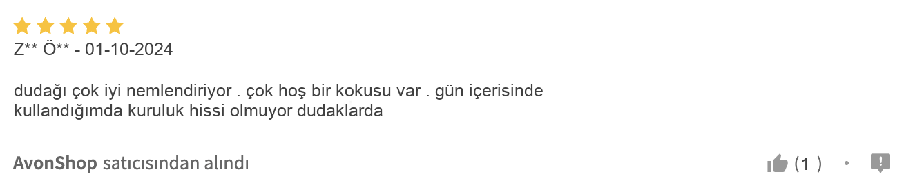 Kullanıcılarımızın da deneyimlerinden öğrendiğimiz, bu favori dudak ürünü kokusundan dokusuna, nemlendirme gücünden kolay uygulamasına kadar beklentileri fazlasıyla karşıladığı. Dudaklarınızdaki kuruluk ve çatlama sorununa hızlı çözüm arıyorsanız, yaptığı besleyici etki ile uzun süre tatmin kalacağınızı rahatlıkla söyleyebilirim. Ayrıca, temiz ve hafif yapısı sayesinde dudaklarınızda ağırlık veya yapışkanlık hissi bırakmıyor, günlük makyaj rutininizin keyifli bir parçası oluyor.