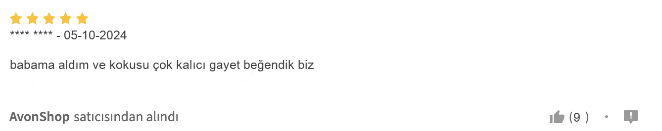 Parfümün en güzel yanlarından biri de kalıcılığı. Kullanıcı yorumlarından da anlayabileceğiniz üzere, gün içinde sürekli tazeleme ihtiyacı hissettirmeyen, başarılı bir performansa sahip. Hem ofiste hem de sosyal ortamlarda, ferah ve kalıcı bir erkek parfümü arayanların favorisi olmaya aday. Üstelik hafif yapısı sayesinde, yoğun kokudan rahatsız olanlar için de mükemmel bir alternatif. Bu özellikleriyle AVON’ın bu parfümü, taze ve doğal bir koku arayan erkeklerin vazgeçilmezi haline gelmiş durumda.
