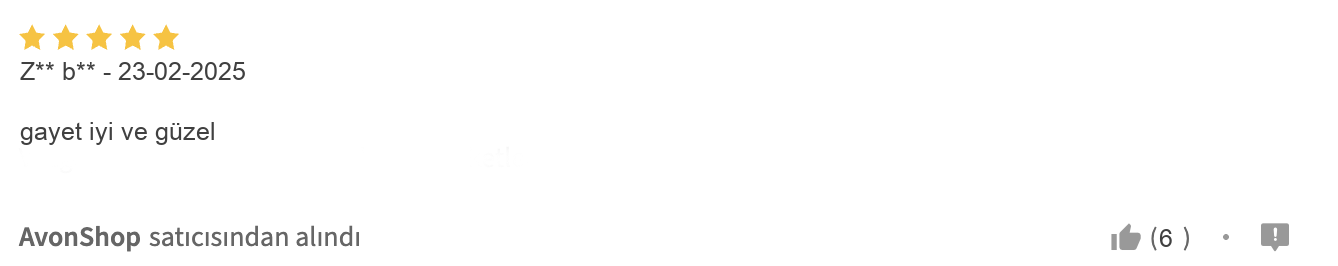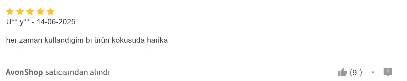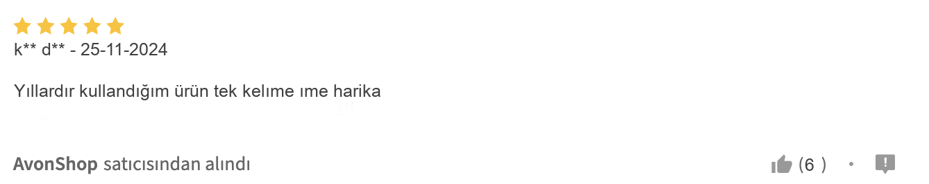 Kullananların sıkça belirttiği gibi, bu AVON deodorant yalnızca performansıyla değil, aynı zamanda paketlemesi ve hızlı teslimat seçenekleriyle de tercih sebebi oluyor. Ürünü uzun zamandır kullananlar, etkili korumasını ve kokusunun ferahlatıcı yapısını özellikle beğeniyor. Üstelik fiyat-performans dengesi açısından da oldukça memnuniyet yaratıyor. Küçük hediyelerle zenginleştirilen alışveriş deneyimi, kullanım keyfini katlıyor.