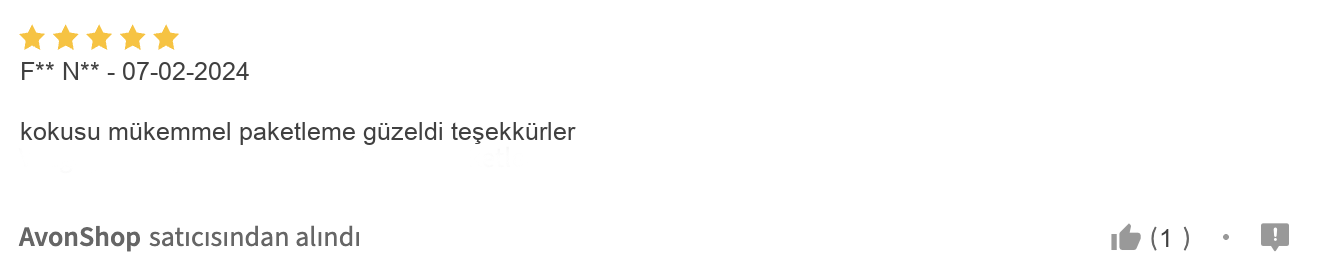 Gerçek kullanıcı yorumlarına baktığınızda, AVON Perceive Kadın Vücut Spreyinin neden bu kadar beğenildiğini kolaylıkla anlayabilirsiniz. Hafif, fresh ve temiz kokusunun yanı sıra, uzun süre kalıcı yapısı ve Avon kalitesi sıkça öne çıkarılan avantajlar arasında. Müşteriler, ürünün paketlemesinin özenli ve hızlı teslimatının sorunsuz olmasından da memnun kalıyor.
