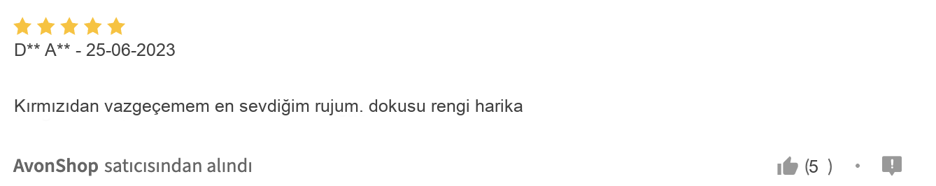 Kalıcılık, bir ruju satın alma kararında hepimizin öncelik verdiği özelliklerden biri. AVON Ultra Mat Ruj, bu alanda gerçekten güçlü. Sürekli tazeleme derdinden kurtarıyor; gün içinde sosyal ortamlarda, toplantılarda ya da özel anlarınızda dudak renginiz tam istediğiniz gibi kalıyor. Kullanıcı yorumlarında da sıkça vurgulandığı üzere, bu ruj kalıcı yapısıyla fark yaratıyor. Pek çok kullanıcı, kalıcı ruj arayışında Red Supreme rujun beklentileri fazlasıyla karşıladığını dile getiriyor.