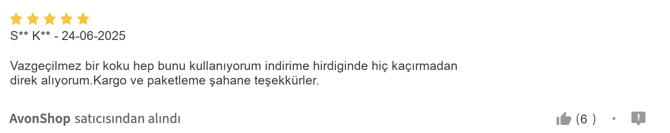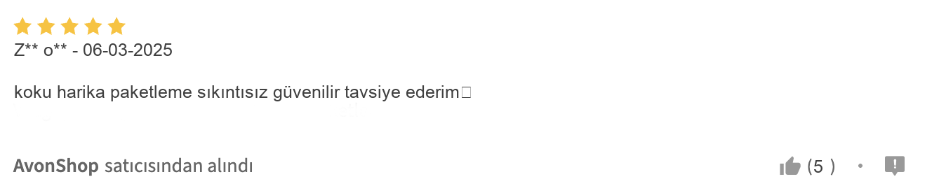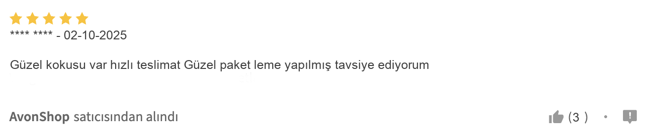 Bazı kullanıcılar kargo süreciyle ilgili ufak sıkıntılar yaşasa da, ürünün etkileyici kokusuna dair memnuniyet çoğunlukta. Ürünün yaz ve kış aylarında rahatlıkla kullanılabilmesi, çok yönlülüğünü ve her mevsim vazgeçilmez olmasını destekliyor. Bu özellikleriyle Avon kadın parfümü arayışında olanlar için bulunmaz bir hazine konumunda.