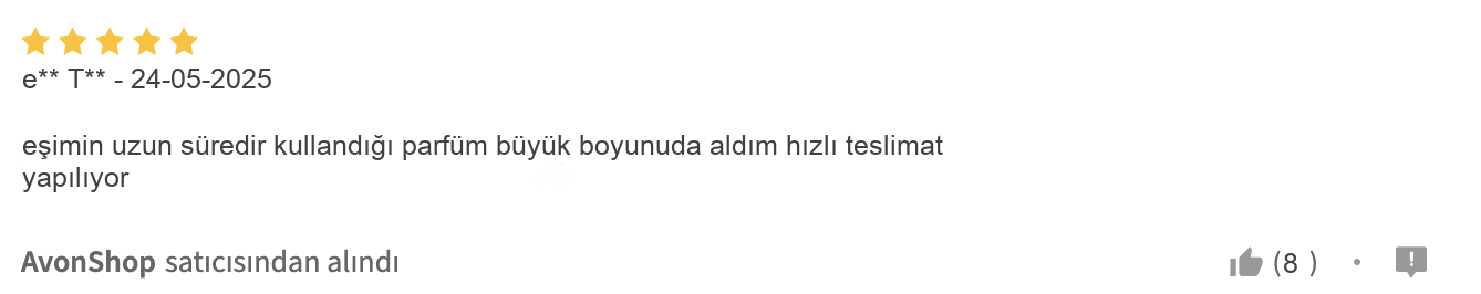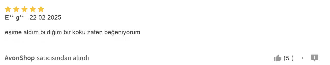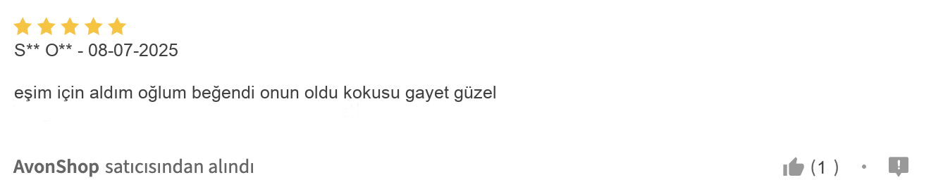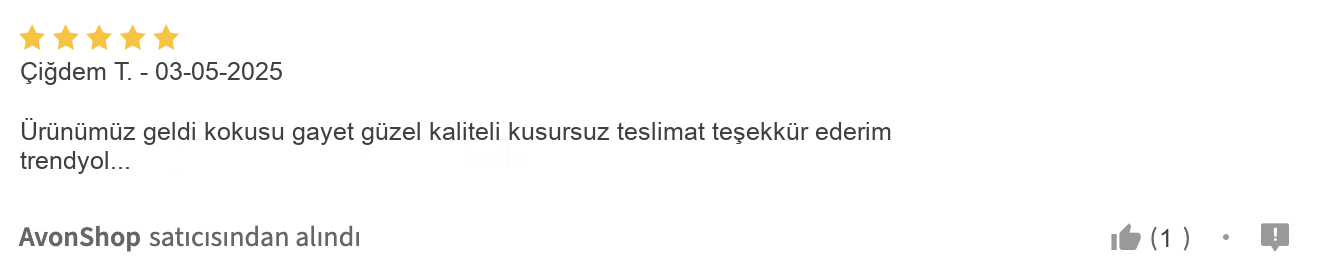 Üstelik, bu kalıcı parfüm hem kendi kullanımı için hem de sevdiklerinize anlamlı bir hediye olarak tercih edilebilecek ender seçeneklerden biri. Kullanıcıların sıkça dile getirdiği memnuniyet ve özenli paketleme, bu AVON parfümü güvenle almanızı sağlıyor. Eşiniz, babanız ya da erkek arkadaşınız için düşündüğünüz hediye parfüm arayışınızda, Full Speed’in hem şıklığı hem de enerjik kokusuyla fark yaratacağından emin olabilirsiniz.