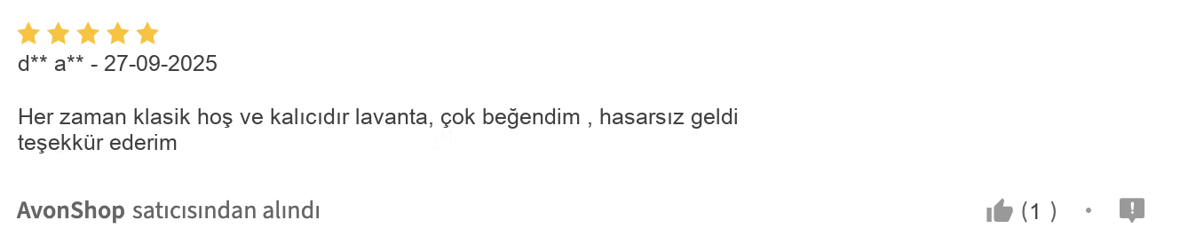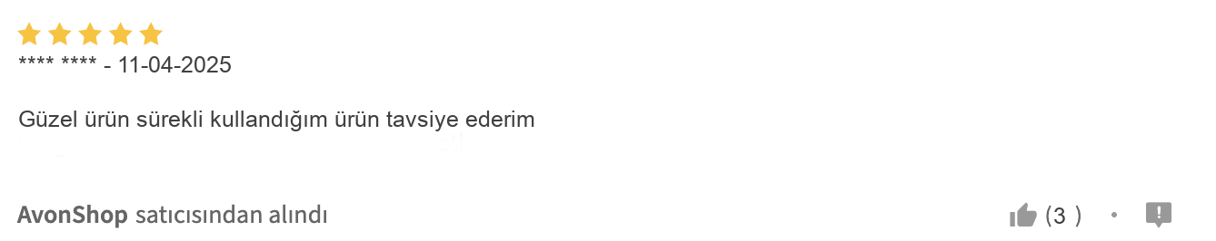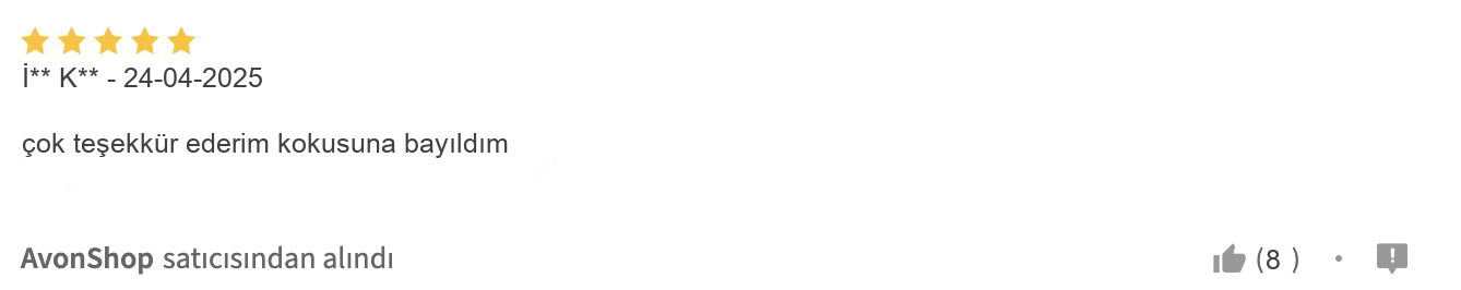 Uzun süre yetecek büyüklükteki 1 litrelik ambalajıyla, bol köpüğü ve etkili formülü sayesinde banyo zamanlarınız daha ekonomik ve keyifli hale geliyor. Kullanıcı yorumlarından da görebileceğiniz gibi, Avon banyo ürünleri kalitesini arayanlar için her zaman güvenilir bir tercih. İster kendiniz için ister sevdiklerinize hediye olarak tercih edin; ürünün kalıcılığı, kokusu ve etkisi çoğu kişinin vazgeçilmezi olmuş durumda.