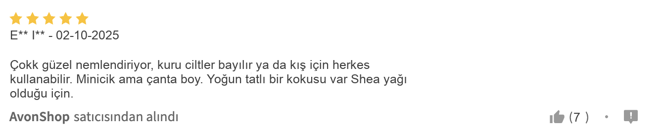 Ayrıca, kokusuyla da dikkat çeken bu shea yağı el kremi, sert kimyasal kokulardan uzak, doğal ve tatlı notalarıyla el bakım rutininize hoş bir dokunuş getiriyor. Hem yoğun nemlendirmek isteyenlerin hem de hafif, ferah koku arayışında olanların beklentilerini karşılayan bu krem, özellikle kış aylarında kuru ciltler için çok ideal bir destekçi olacak.