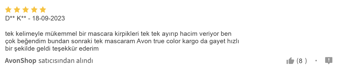 Hem ürünün dayanıklılığı hem de pratik kullanımı, günlük hayatınızda büyük kolaylık sağlıyor. Özellikle suya dayanıklı maskara arayanların tercihi olan Avon True Colour, yazın terlemesi veya aniden yağan yağmurda bile akma yapmamasıyla sık sık övgü topluyor. Kirpik bakımı sağlayan formülü sayesinde ise, düzenli kullanımlarda kirpiklerinizin daha sağlıklı ve güçlü hale geldiğini göreceksiniz. Böylece hem güzel hem sağlıklı kirpiklere sahip olmanız mümkün oluyor.