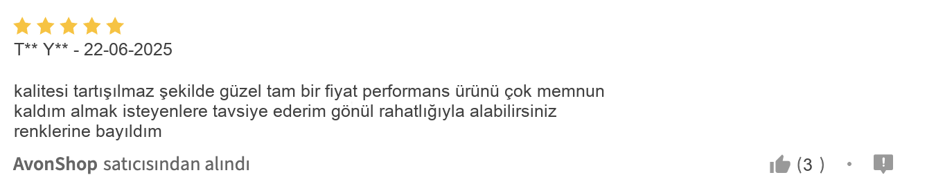 Kullanıcı yorumları, bu performansın gerçekliğini doğruluyor. Avon ruj yorumları arasında sıkça belirtilen noktalardan biri olan nemlendirme efekti, rujun uzun saatler boyunca dudaklarınızı kuru hissettirmemesini sağlıyor. Kuru ve çatlak dudaklar için bile uygun olan bu formül, yumuşak ve rahat bir kullanım deneyimi sunuyor. Ayrıca, ürünün orijinal olması ve güvenilir içeriği de ekstra bir güvence olarak öne çıkıyor.