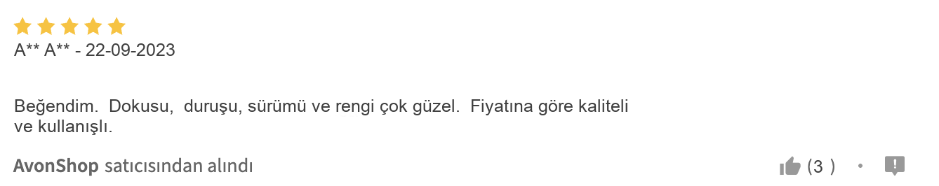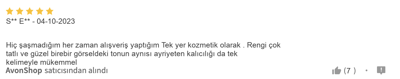 Tercihinizi yaparken kullanıcıların deneyimlerini göz önünde bulundurmanız da faydalı olacaktır. Birçok kişi Avon ürünleri arasında yer alan bu ruju yıllardır severek kullanıyor ve kesinlikle tavsiye ediyor. Siz de bu yumuşak dokulu, canlı ve kalıcı ruju denemek isterseniz, buradan hemen ulaşabilirsiniz.