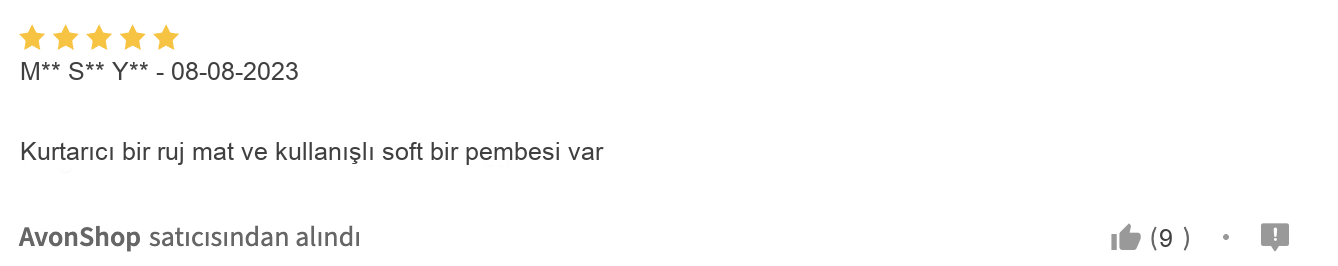 Tabii ki, bazı ufak kalıcılık sorunlarının yaşandığını dile getiren kullanıcılar var, fakat çoğunlukla renk canlılığı, kullanım kolaylığı ve dudakları kurutmaması daha çok konuşuluyor. Mat rujlarda yaşanan kalıcılık problemlerini minimuma indiren bu ürün, Avon’un farklı avantajları ile güzel bir denge yakalıyor.